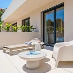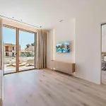 Situated 3 km from the Boquer Valley, the 1-bedroom Gotmar Beach Is A Modern Port de Pollenca villa invites guests to relax at a terrace.